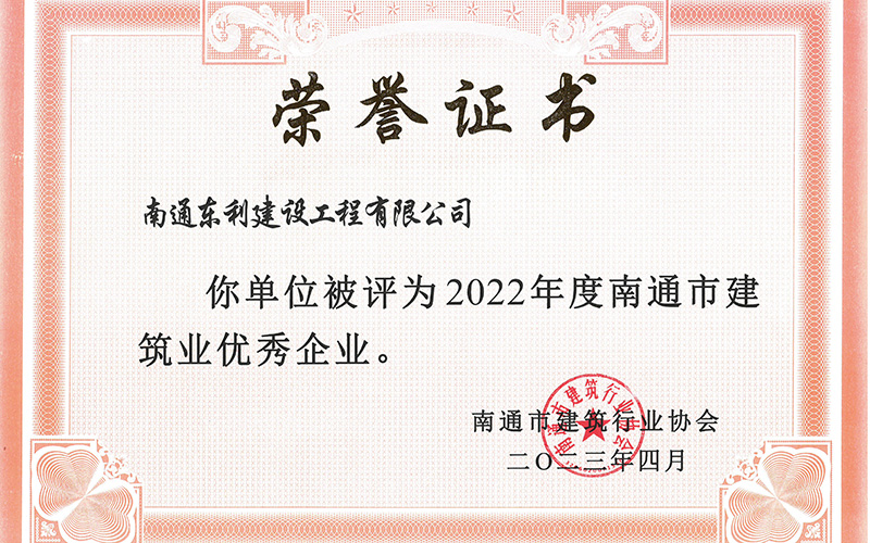 2022年度南通市建筑業(yè)優(yōu)秀企業(yè)
