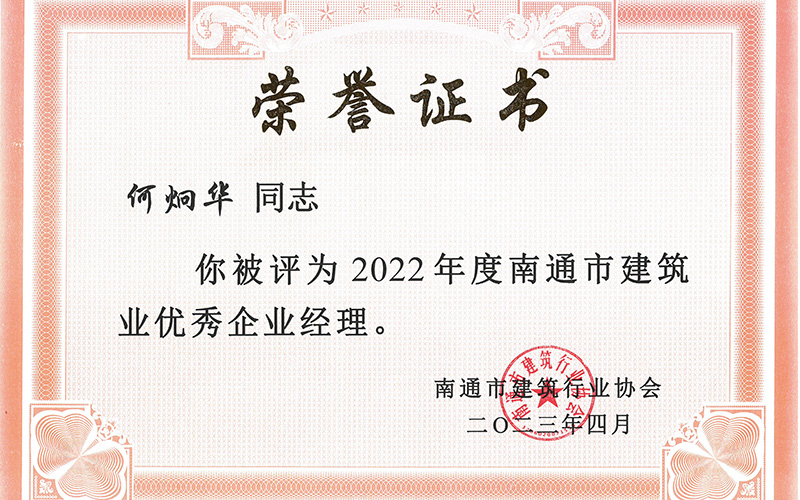 2022年度南通市建筑業(yè)優(yōu)秀企業(yè)經(jīng)理