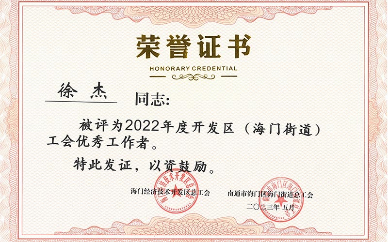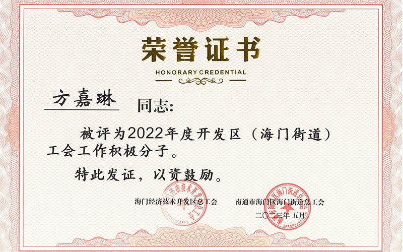 2022年度開發(fā)區(qū)工會優(yōu)秀工作者