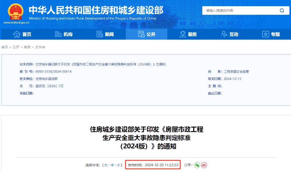 住房城鄉(xiāng)建設(shè)部關(guān)于印發(fā)《房屋市政工程生產(chǎn)安全重大事故隱患判定標(biāo)準(zhǔn)(2024版)》的通知各省、自治區(qū)住房城鄉(xiāng)建設(shè)廳,直轄市住房城鄉(xiāng)建設(shè)(管)委,北京市城市管理委,上海市交通委,新疆生產(chǎn)建設(shè)兵團(tuán)住房城鄉(xiāng)建設(shè)局,山東省交通運(yùn)輸廳:現(xiàn)將《房屋市政工程生產(chǎn)安全重大事故隱患判定標(biāo)準(zhǔn)(2024版)》印發(fā)給你們,請認(rèn)真貫徹
